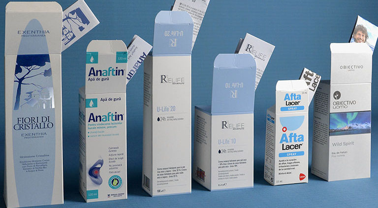 - astucci, fustellati o incollati, in linea o con fondi incollati, con chiusura ad incastro o a colla, con interni sagomati, finestrature o inserti porta oggetti. Gli astucci sono spesso accompagnati da bugiardini, foglietti illustrativi con pieghe multiple che contengono indicazioni utili per il corretto utilizzo dei prodotti (ad esempio in ambito parafarmaceutico o nel settore cosmetico);
